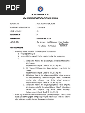 Pegawai teknologi maklumat f41 4. Penolong pegawai ehwal ekonomi (e29). Sijil pelajaran malaysia atau kelayakan yang diiktiraf setaraf dengannya oleh kerajaan serta sijil kemahiran malaysia tahap 2 dalam bidang berkaitan atau kelayakan yang diiktiraf setaraf dengannya. Juruteknik komputer gred ft19 7. Lembaga pertubuhan peladang ~ pembantu ehwal ekonomi.